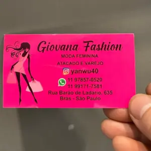 A Giovana Fashion está localizada no Shopping Canindé, no Brás, São Paulo, com endereço físico na Rua Barão de Ladário, nº 635. Também vende online com envio pelos Correios para todo o Brasil.